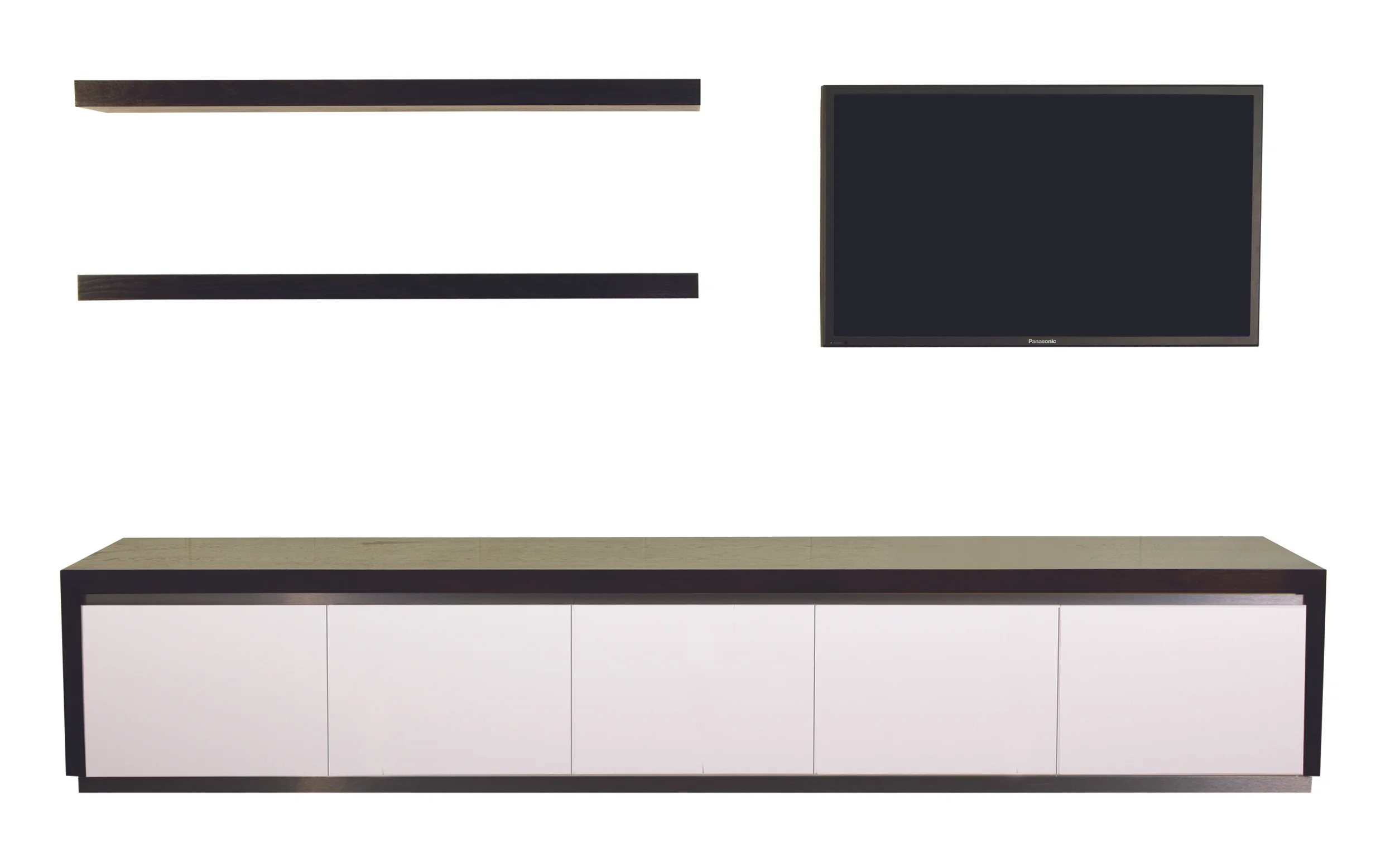 With bold colour contrasts of Wenge timber and Grey pebble satin 2 Pac mixed with dramatic shape shifting steps accompanied by silver shadow line, it creates a true illusion of floating. This design includes push to open doors and drawers, floating shelves, and true marine grade metals to protect against Australian weather conditions.